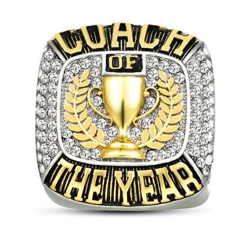 2025 COACH OF THE YEAR Championship Ring – Premium 2025 Coach Award Gift, Thank You Appreciation Keepsake, Sports Trophy Ring with Gold Dual Plating and CZ Stones