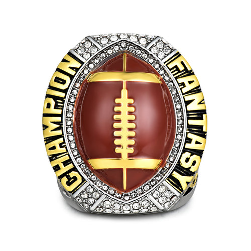 2026 Fantasy Football Championship Ring–Gold & Silver Dual Plated Trophy-Style Ring with Enamel Football Center, Heavyweight Award Gift for League Winners